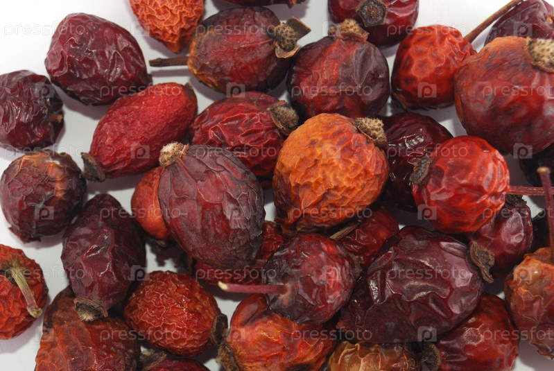 Сушеные ягоды шиповника на белом фоне