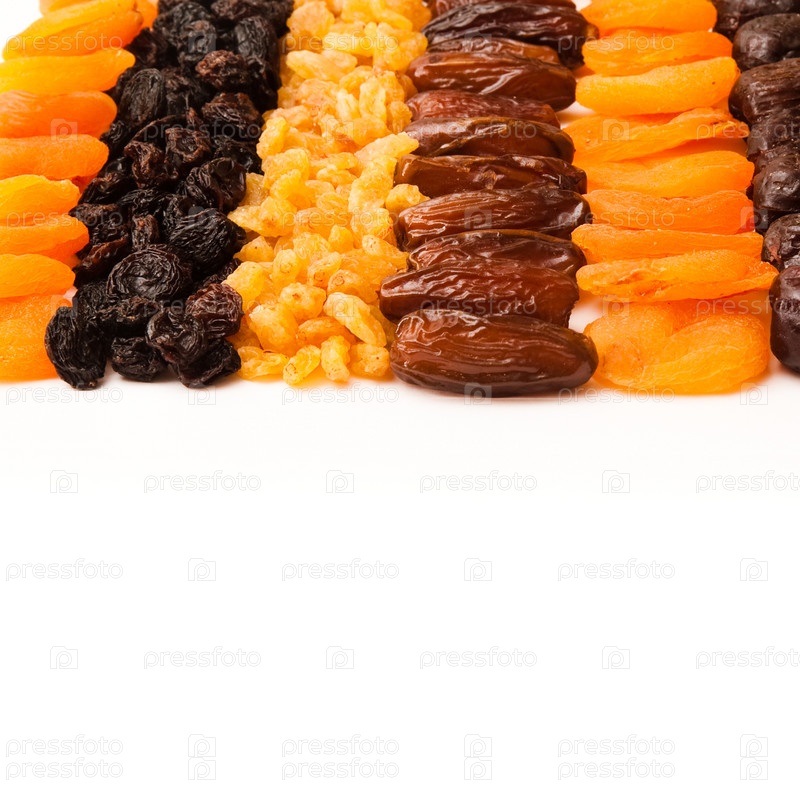 Сухофрукты на белом фоне