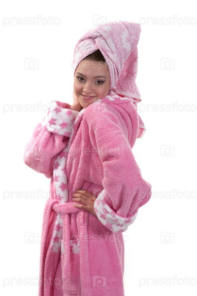 Девушка в розовом халате