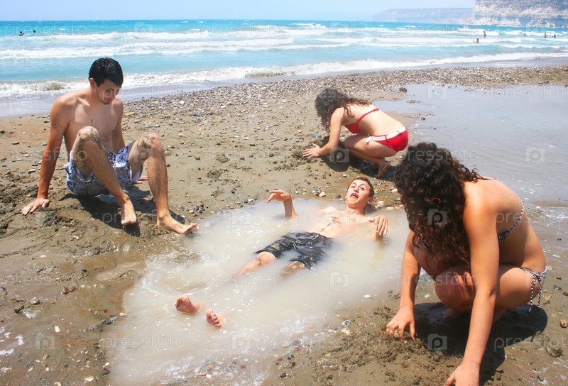 Компания молодых людей развлекаются на пляже
