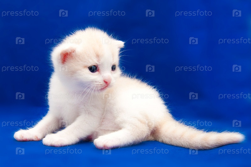 Белый котенок на синемфоне