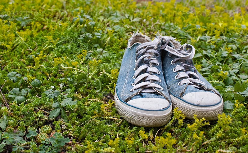 Голубые кеды на траве