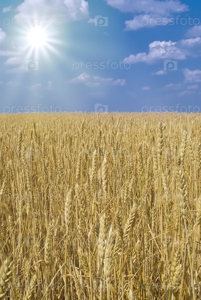 Бескрайнее пшеничное поле в солнечный день