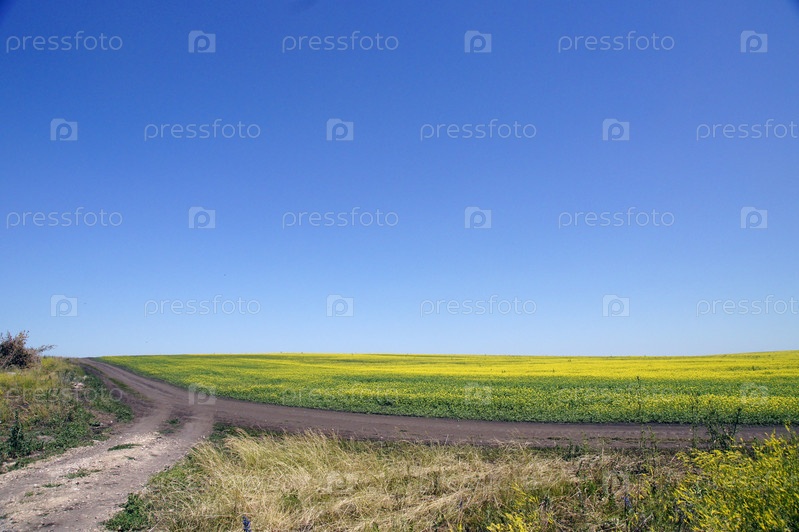 Дорога по краю цветущего поля