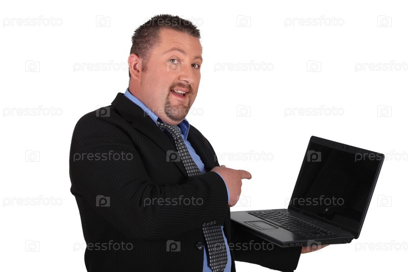 Человек указывает на ноутбук