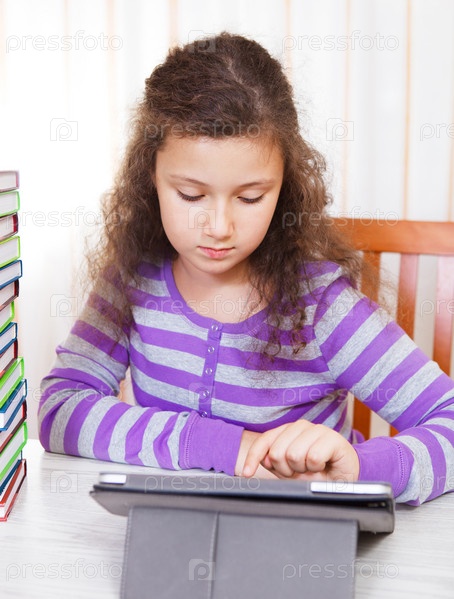 Девочка брюнетка с планшетным компьютером