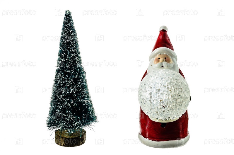 Фигура Санта-Клауса и Рождественская елка на белом фоне