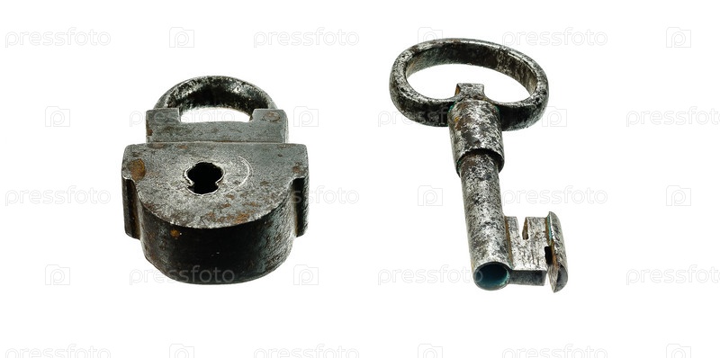 Старый металлический замок и ключ