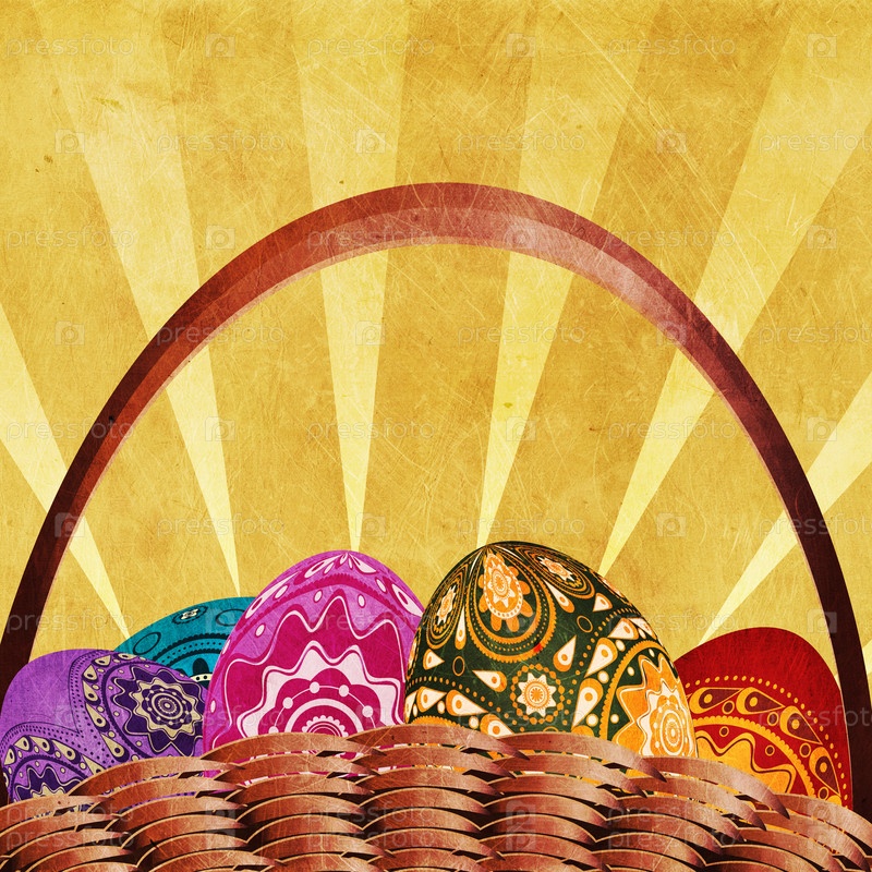 Пасхальная открытка с корзинкой яиц