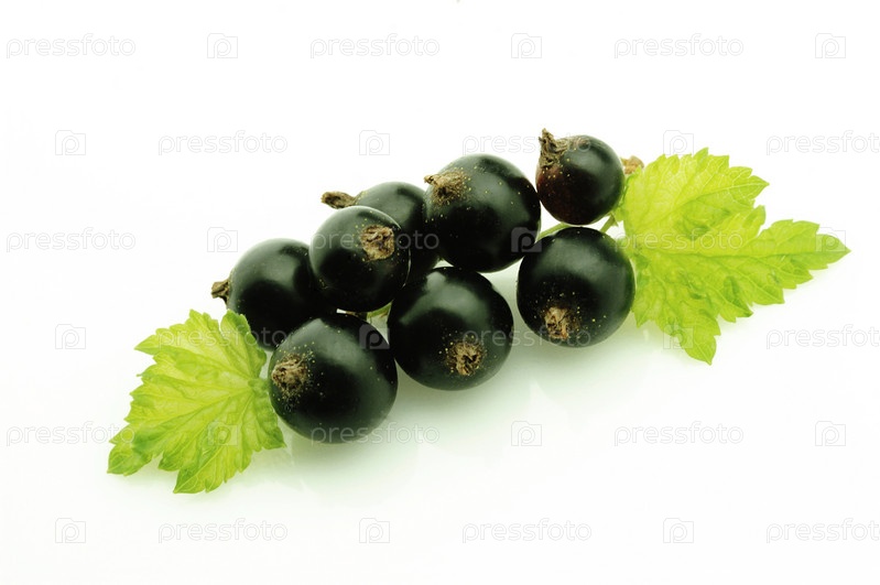 Черная смородина с листьями на белом фоне
