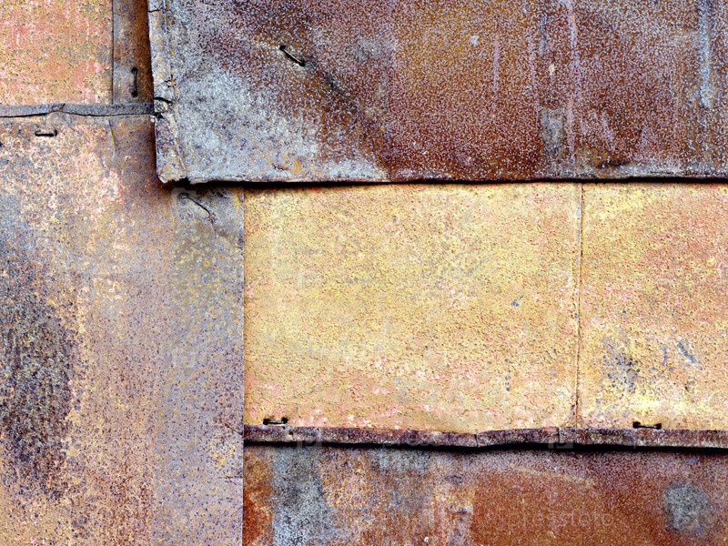 Старые ржавые железные листы, скрепленные проволокой