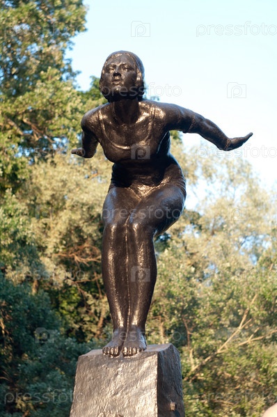 Скульптура пловчихи на Пушкинской набережной в Москве