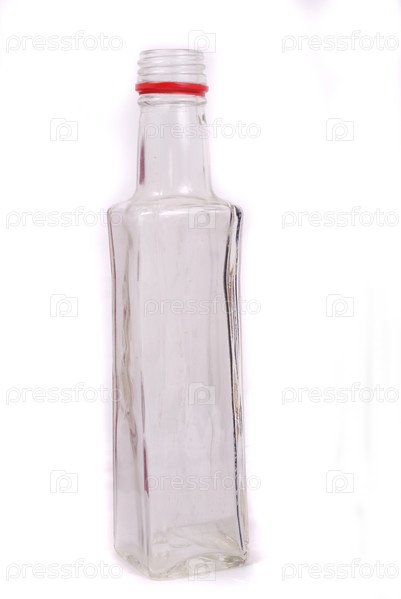 Пустая стеклянная бутылка на белом фоне