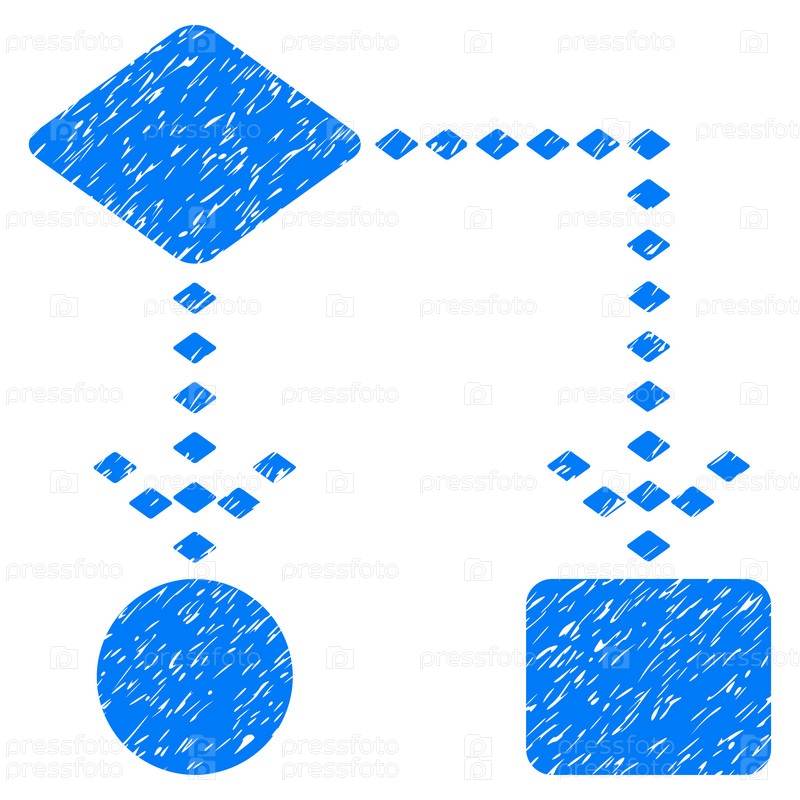 Grunge Algorithm Scheme Иконка с грандж-дизайном и грязной текстурой. Грязная векторная синяя пиктограмма для имитаций штампов резиновых печатей и водяных знаков. Символ черновика