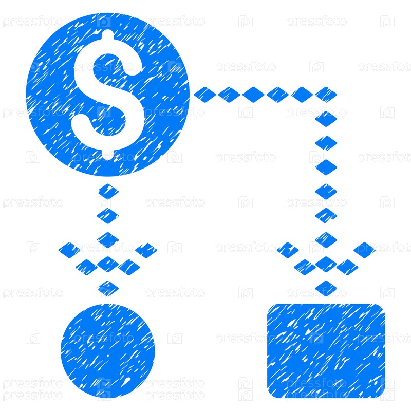 Икона Grunge Cashflow Scheme с грандж-дизайном и грязной текстурой. Нечистая векторная голубая пиктограмма для имитаций резиновых печатей и водяных знаков. Символ стикера проекта