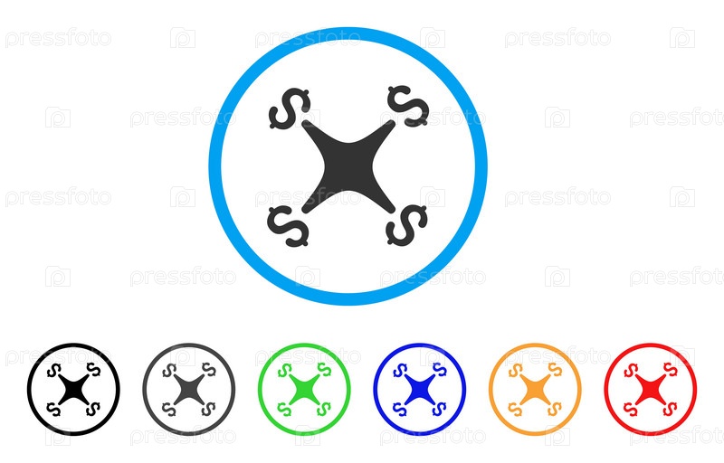 Стиль - это плоский символ делового беспилотника серого цвета внутри светло-синего круга с черными, серыми, зелеными, синими, красными и оранжевыми цветовыми вариантами