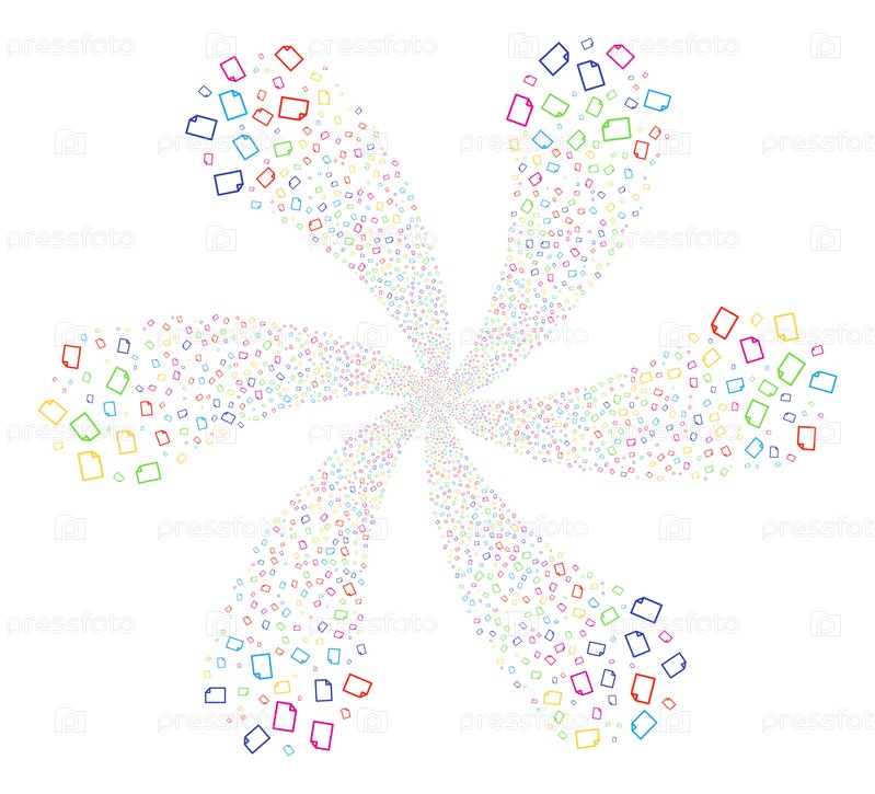 Яркий новый файл циклонический взрыв. психоделический вихрь, объединенный из разбросанных новых объектов файлов. стиль векторной иллюстрации - плоские знаковые символы