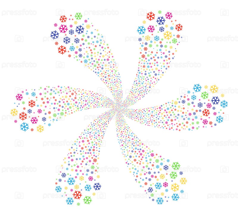 Гипнотический поворот, разработанный из предметов с разбросанными снежинками. стиль векторной иллюстрации - плоские знаковые символы