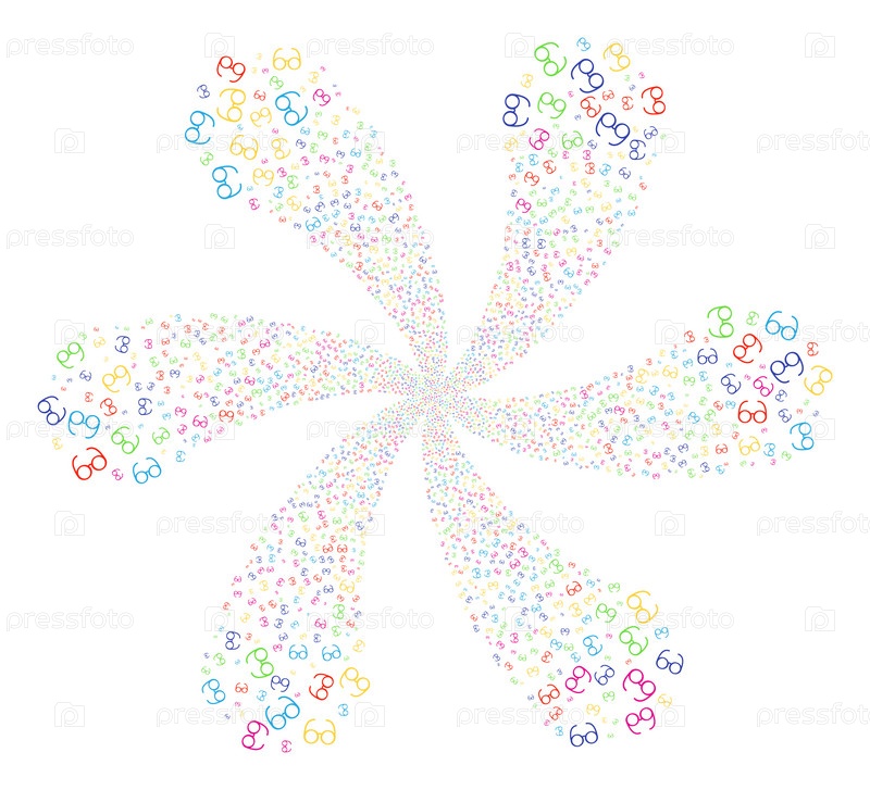 Группа циклонических цветов Multi Colored Spectacles. Гипнотический цвет, сделанный из символов дисперсных очков. Стиль векторной иллюстрации - плоские знаковые символы