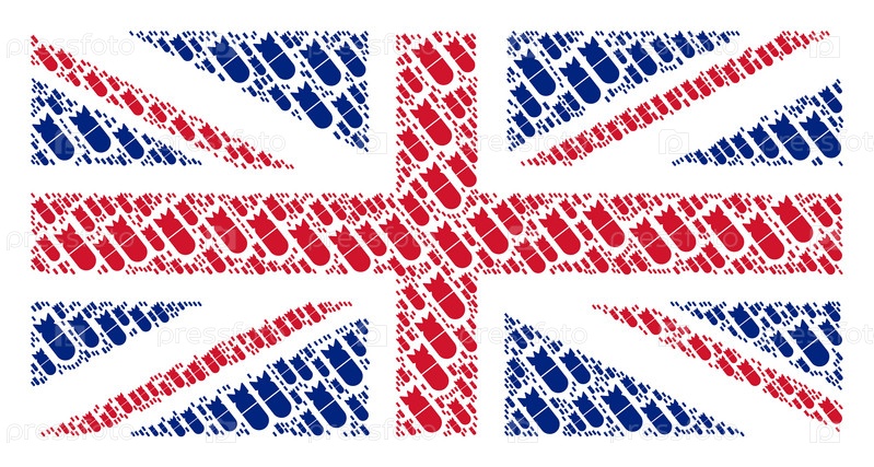 Векторные элементы дизайна авиационных бомб объединены в концептуальный шаблон флага Великобритании