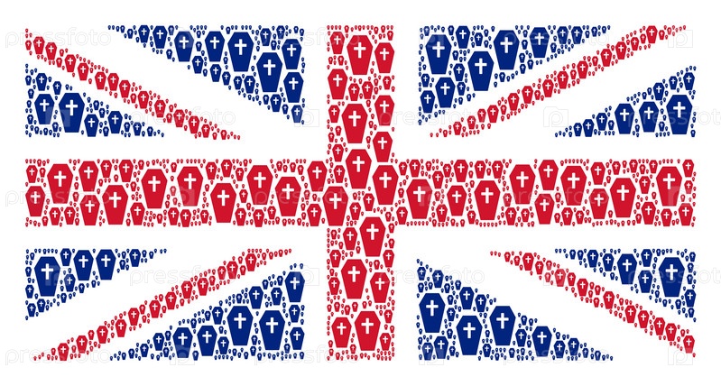 Векторные элементы гроба организованы в мозаичный шаблон флага Великобритании