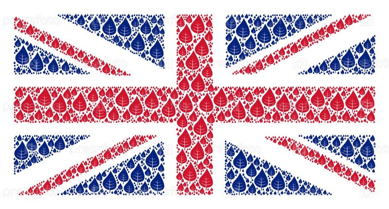 Векторные элементы дизайна листьев растений составлены в концептуальную иллюстрацию английского флага