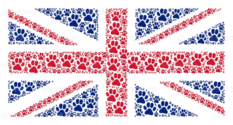 Векторные элементы отпечатков лап составлены в мозаичный шаблон флага Великобритании