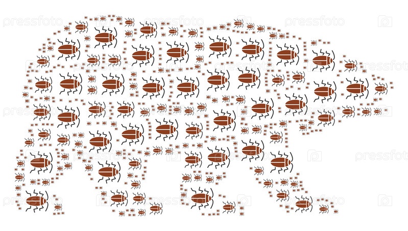 Концепция медведя выполнена из элементов дизайна таракана.Векторные иконы тараканов составлены в виде геометрического узора медведя