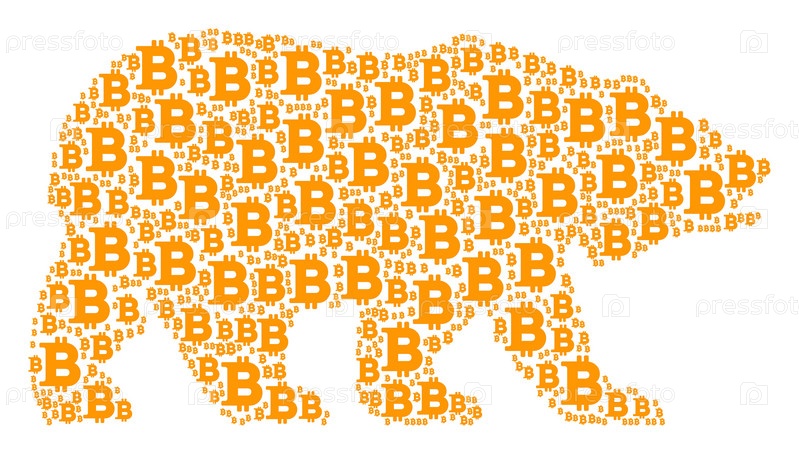 Векторные биткойн-элементы объединяются в концептуальный медвежий шаблон