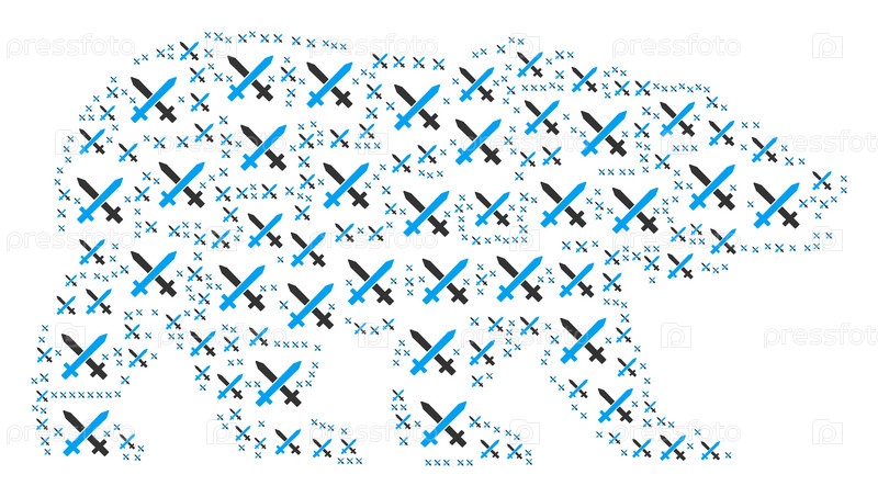 Векторные пересекающие мечи элементы составлены в геометрическую иллюстрацию медведя