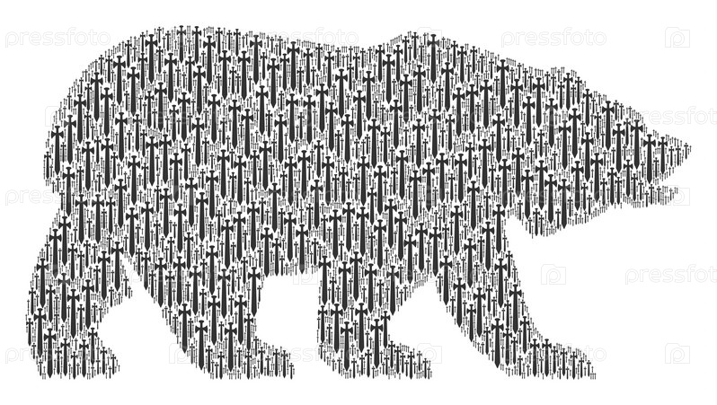 Векторные элементы средневекового меча объединены в мозаичную композицию медведя