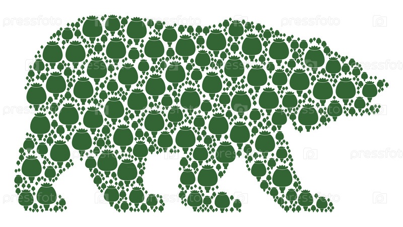 Векторные элементы дизайна мака опиума организованы в мозаичный образ медведя