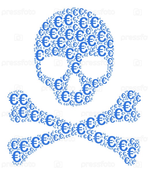 Векторные пиктограммы с символом евро объединены в иллюстрацию мозаичного черепа