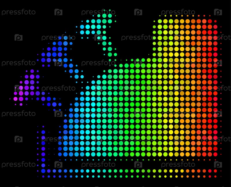 Пикселированная яркая полутонная икона кассовой машины с использованием цветовых оттенков спектра с горизонтальным градиентом на черном фоне