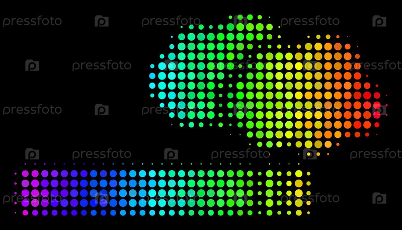 Пятнистый цветный символ сигаретного дыма в полутонных тонах с использованием цветовых вариаций спектра с горизонтальным градиентом на черном фоне