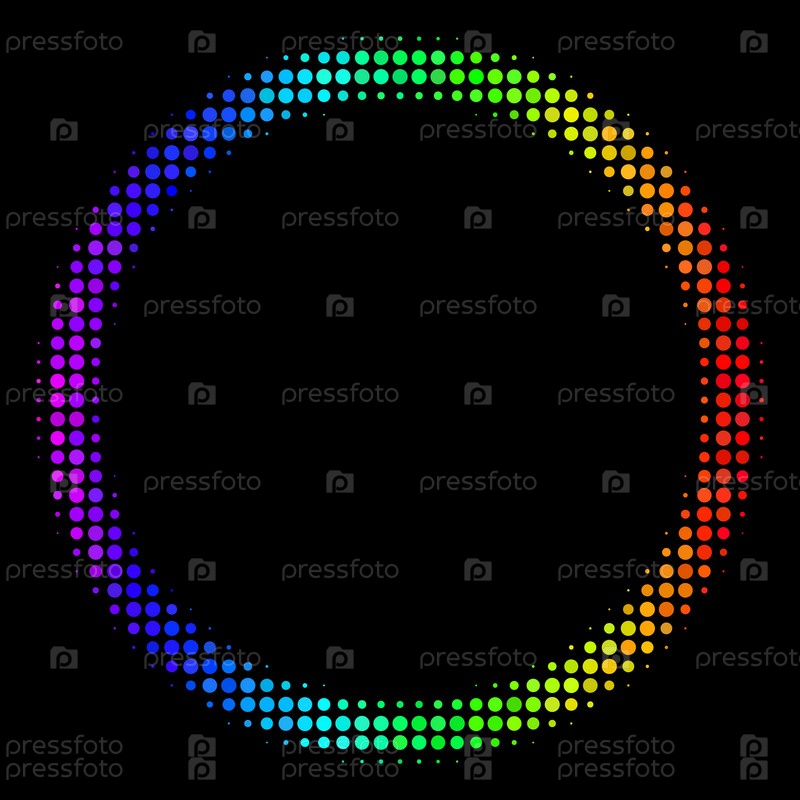 Пиксельные яркие полутонные иконы пузырей кругов с использованием цветовых оттенков спектра с горизонтальным градиентом на черном фоне