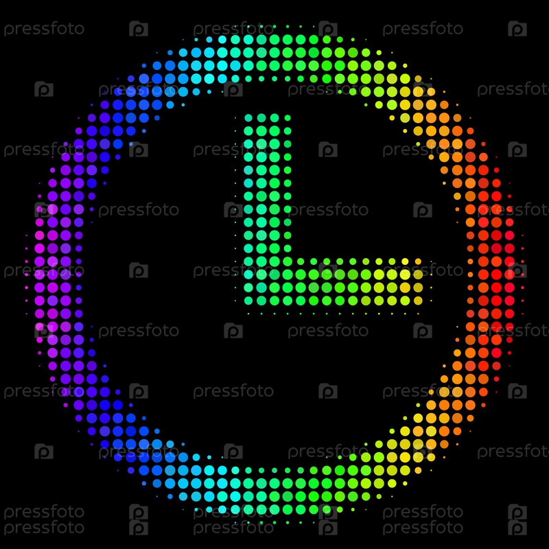 Пятнистый цветный полутон часов икон в спектральных оттенках с горизонтальным градиентом на черном фоне. цветовой векторный рисунок символа часа, организованного круглыми частицами