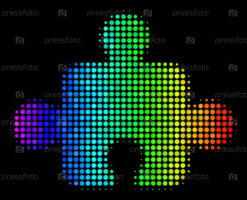 Икона компонента с яркими точками полутонна, нарисованная спектральными цветовыми тонами с горизонтальным градиентом на черном фоне.Красно-векторный рисунок символа компонента создан со сферическими элементами