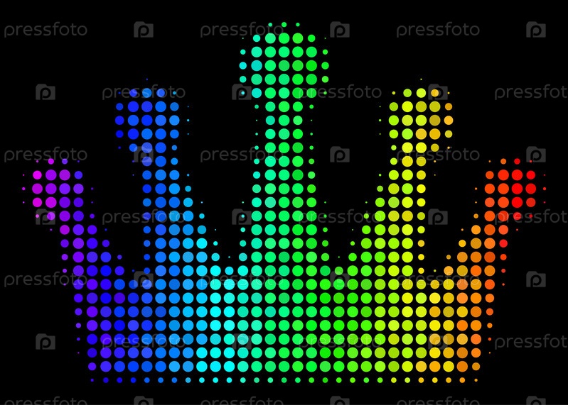 Пикселированная цветная икона полутонной короны, нарисованная с вариациями цветов радуги с горизонтальным градиентом на черном фоне