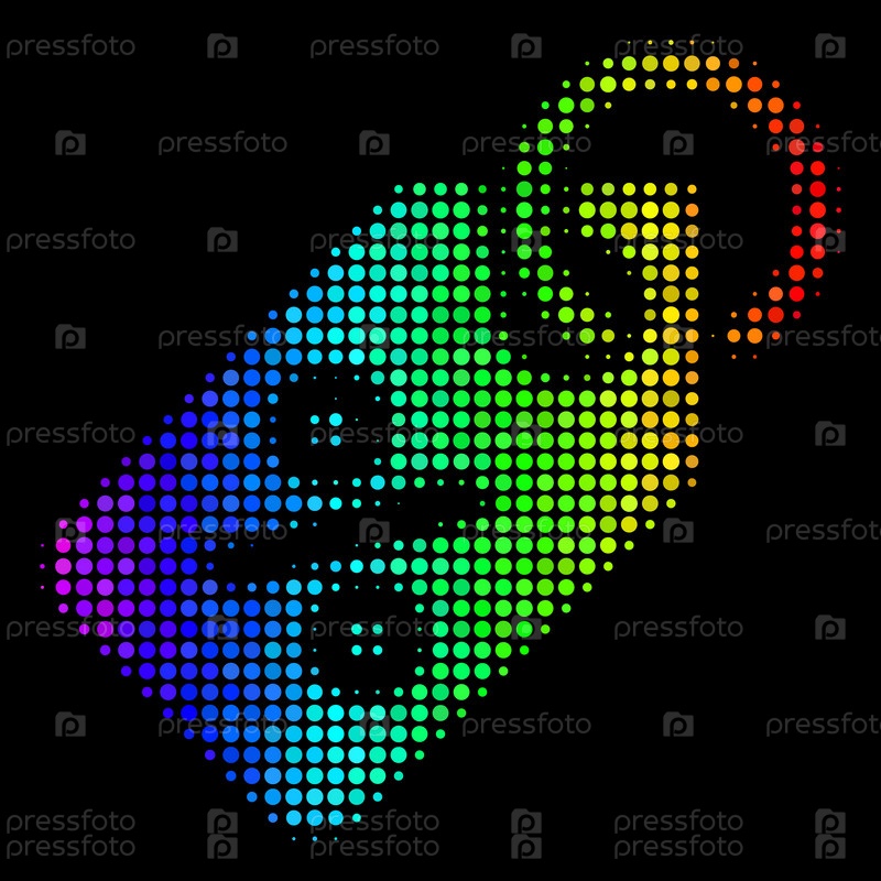 Пикселированный цветный иконка дисконтного тега полутон, нарисованная спектральными цветовыми оттенками с горизонтальным градиентом на черном фоне