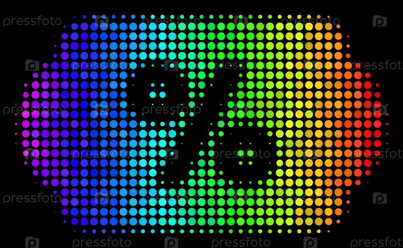 Пиксель яркий полутон значок купона, нарисованный цветными оттенками спектра с горизонтальным градиентом на черном фоне