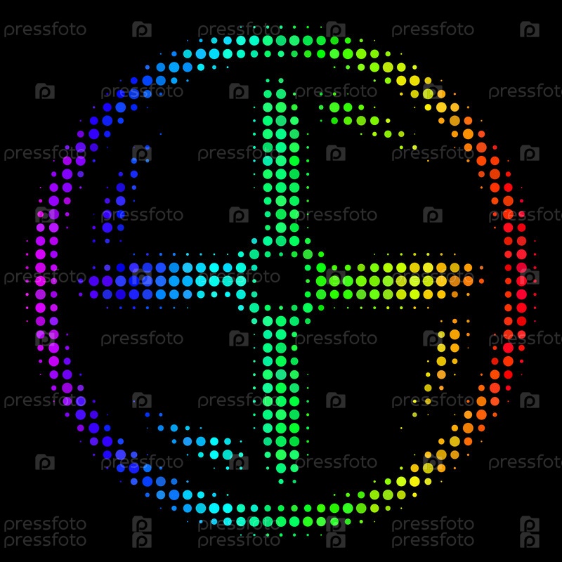 Пикселированный яркий иконка вращения винтов дрона полутон в спектральных цветовых оттенках с горизонтальным градиентом на черном фоне