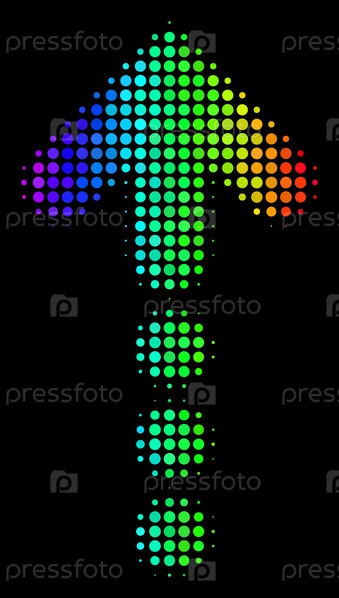 Впечатляющий иконка пунктированной стрелы с половинными тонами в спектральных цветовых оттенках с горизонтальным градиентом на черном фоне