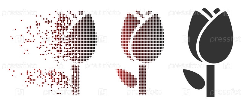 Векторная икона тюльпанов в рассеянном, пунктированном полутоне и неповрежденных целых версиях.Эффект разложения включает прямоугольные искры и горизонтальный градиент от красного к черному