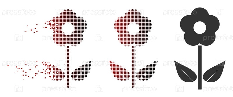 Икона векторного цветочного растения в рассеянном, пунктированном полутон и неповрежденных целых версиях.Эффект дезинтеграции включает квадратные точки и горизонтальный градиент от красного к черному