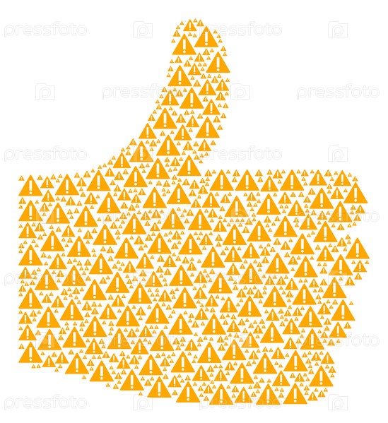 Положительный коллаж жестов, сформированный из предупреждающих элементов переменного размера. Абстрактная векторная концепция поднятия пальца. Иконы предупреждения организованы в форме приложения