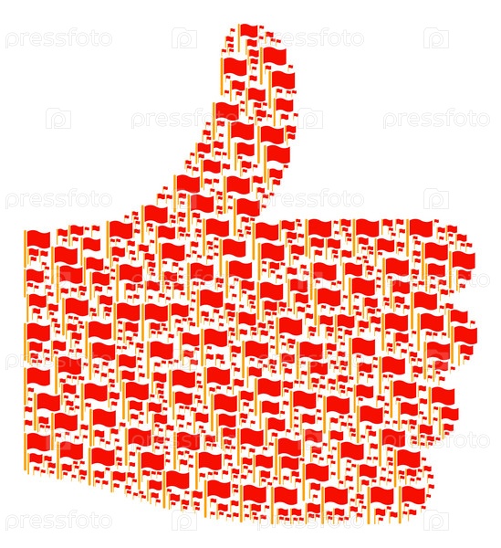 Valid mark composition created with waving flag objects in variable sizes Abstract vector thumb up representation Изображения флага с размахом расположены в форме, подходящей для выбора