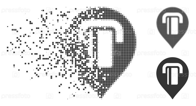 Растворенный маркер карты банкомата с пунктирным знаком с эффектом дезинтеграции.Включены полутонные пикселированные и не поврежденные целые серые варианты