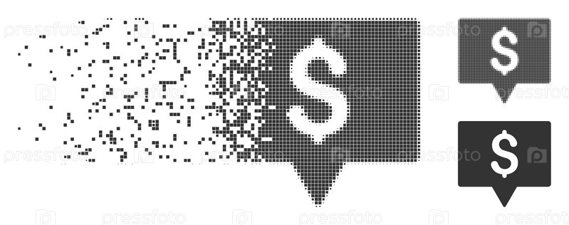 Разбросанный указатель карты банка с пунктирным знаком с эффектом дезинтеграции.Включены полутонные пикселированные и не поврежденные твердосерые версии