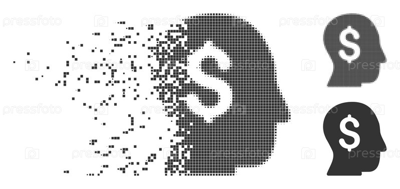 Расколотая икона пикселя бизнесмена с эффектом дезинтеграции.Включены половинчатые пунктирные и нетронутые варианты целого серого цвета.Прямоугольные точки расположены в рассеянную форму бизнесмена